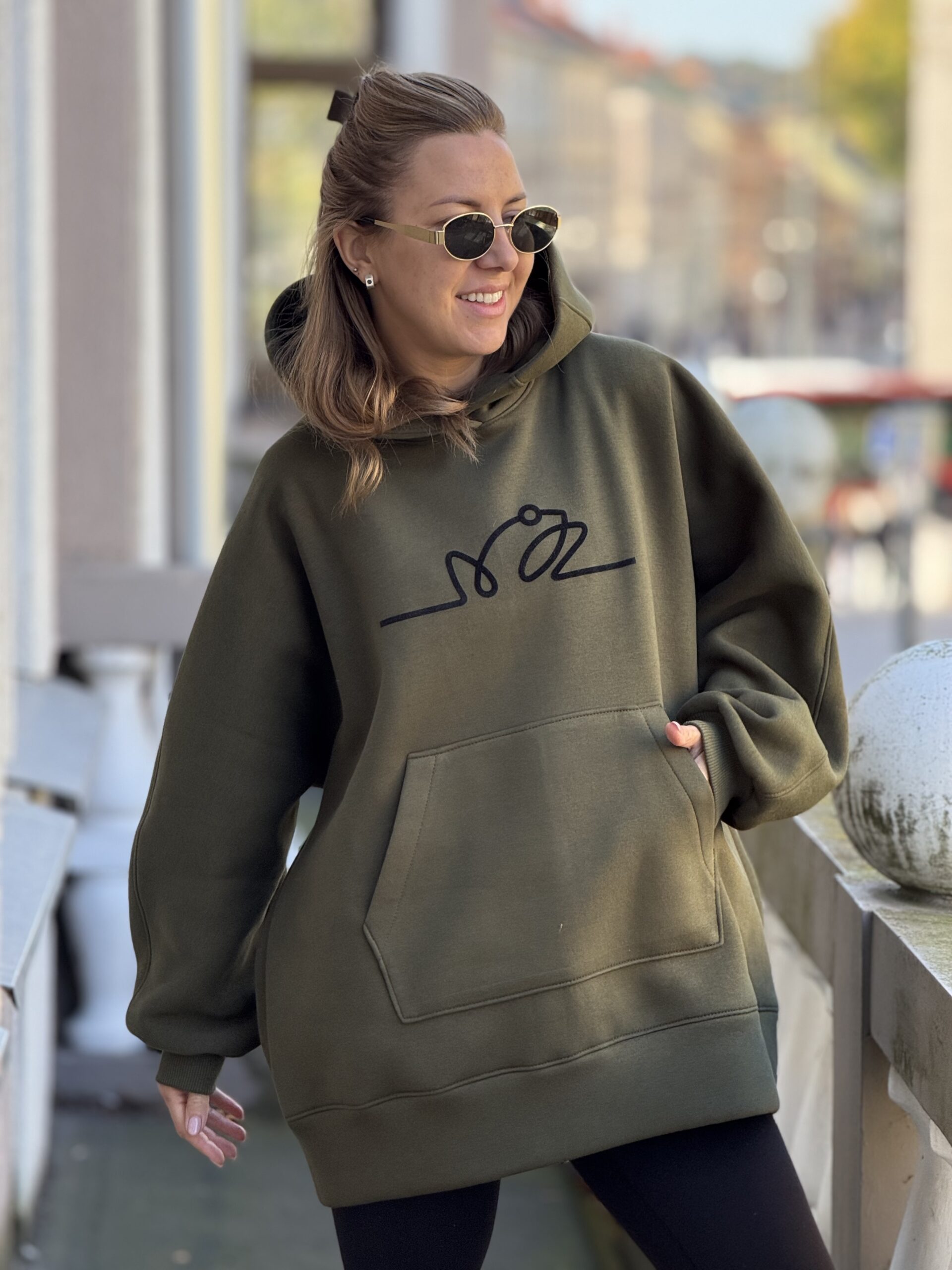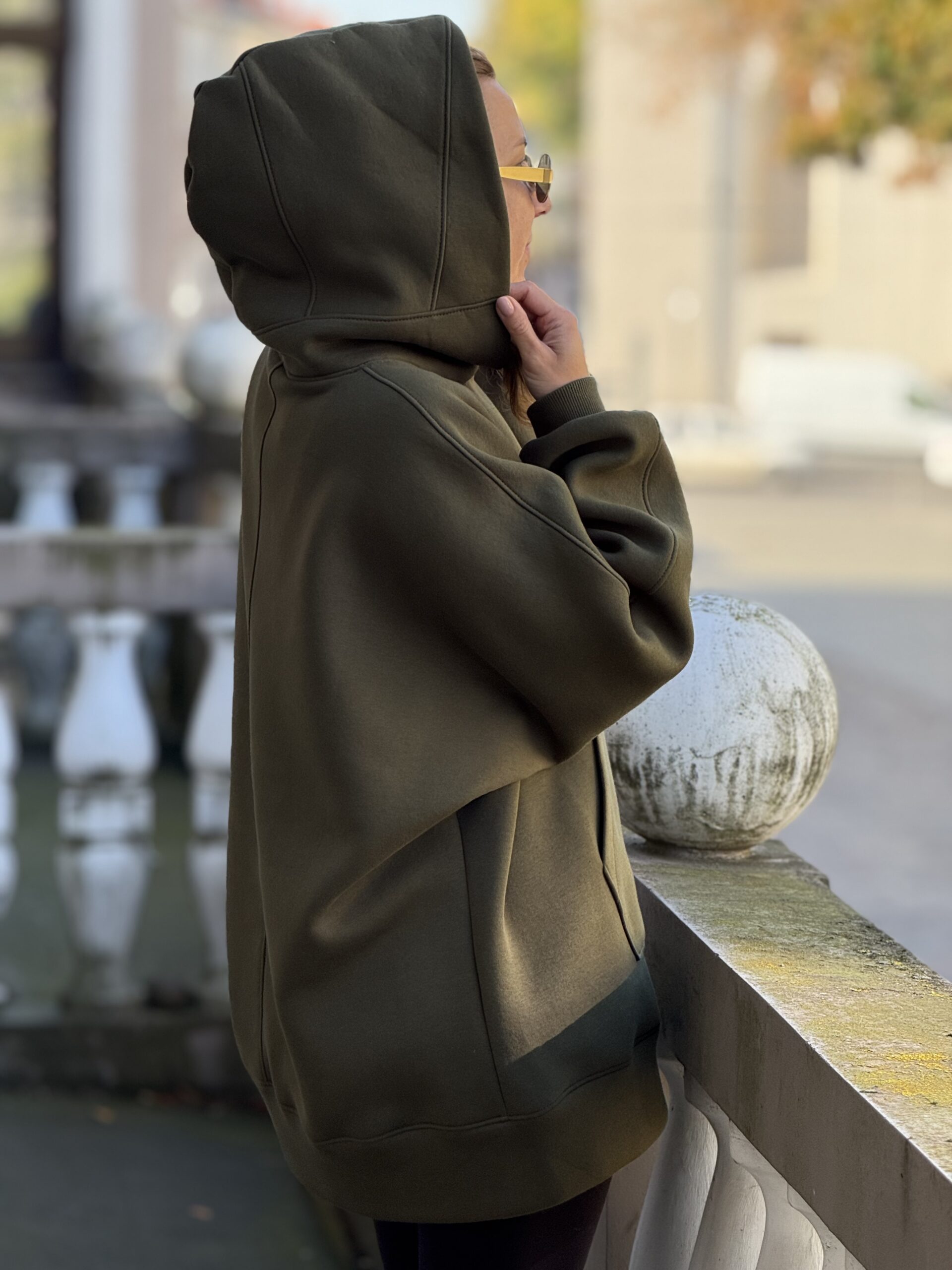 Chaki OVERSIZE didelis VARLIŲ bliuzonas su gobtuvu (su pūkeliu)
