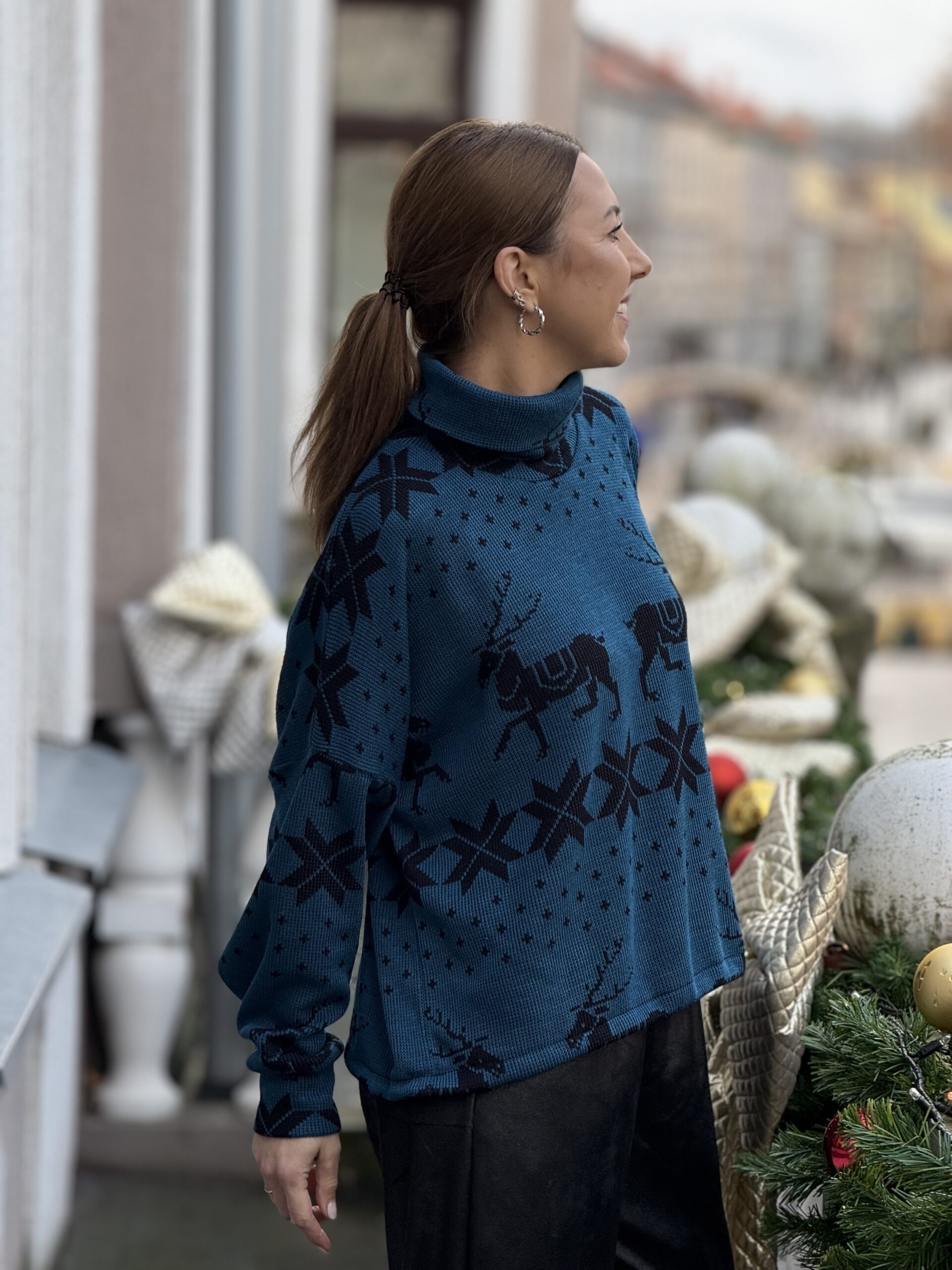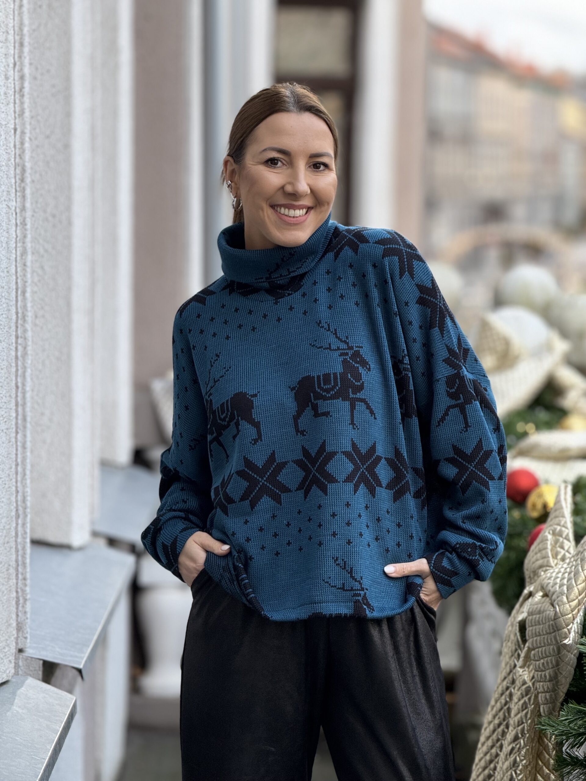 Elektrinis mėlynas Megztinukas BRIEDŽIUKAI - L-XL