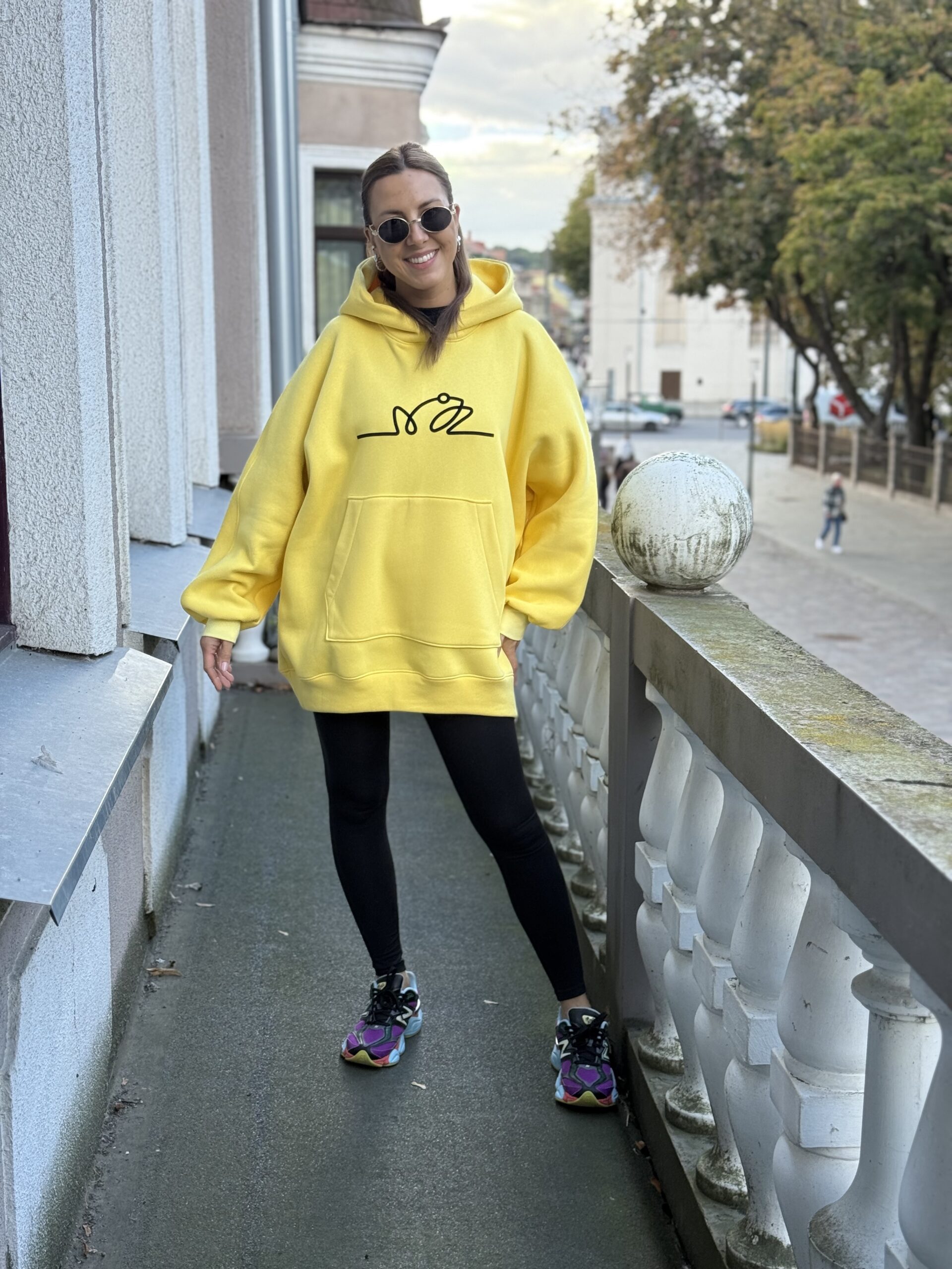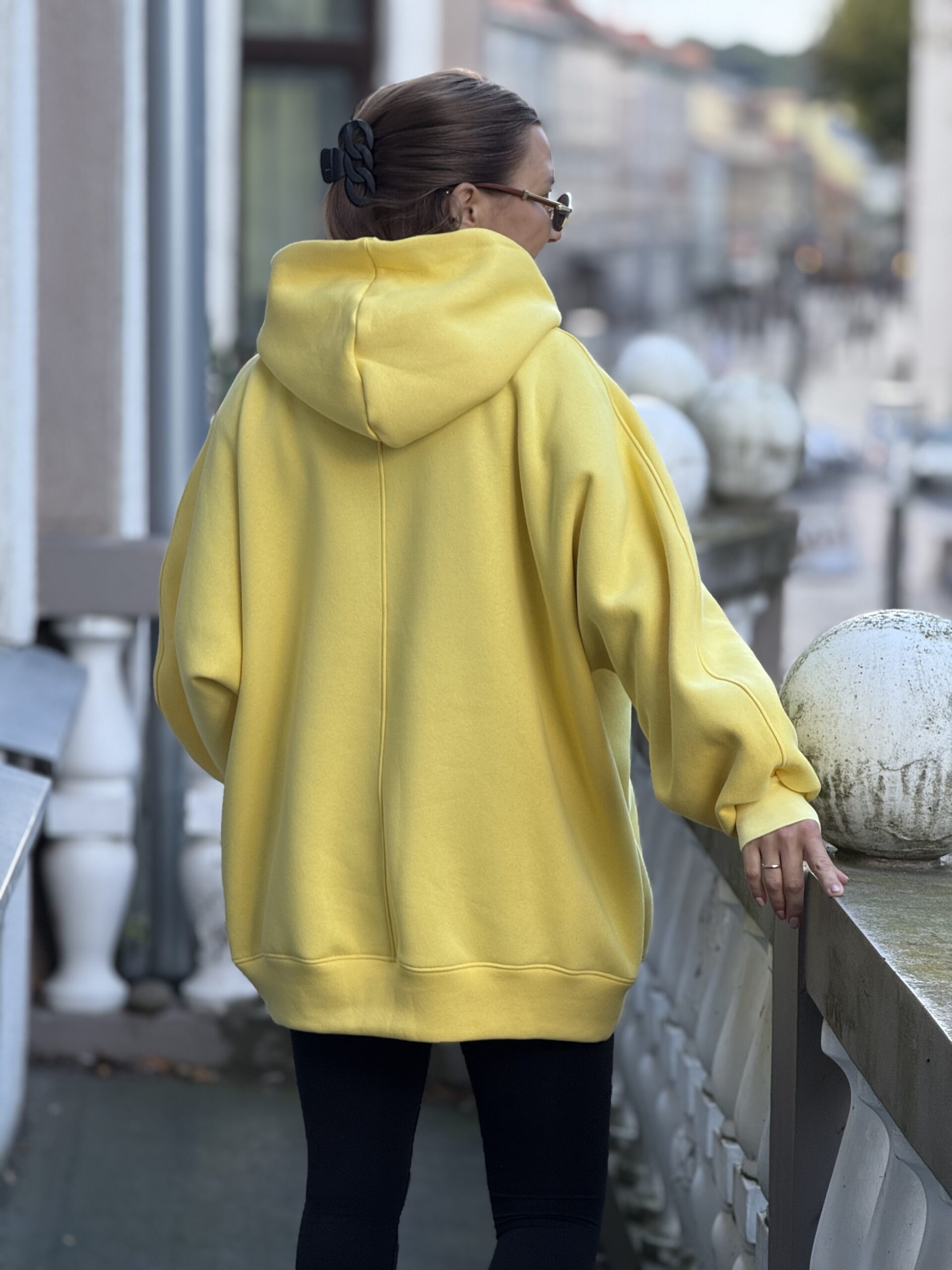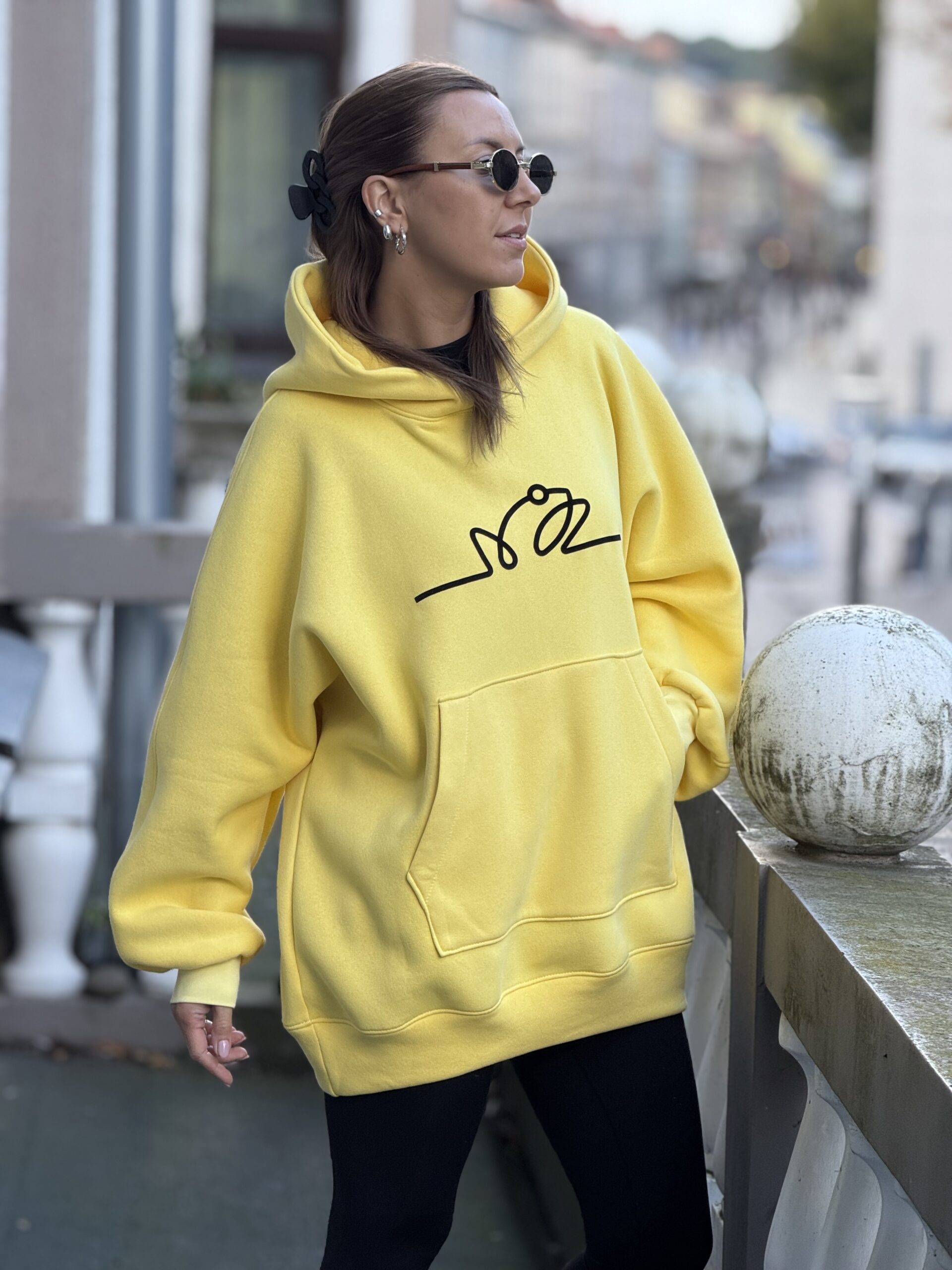 Geltonas OVERSIZE didelis VARLIŲ bliuzonas su gobtuvu (su pūkeliu)