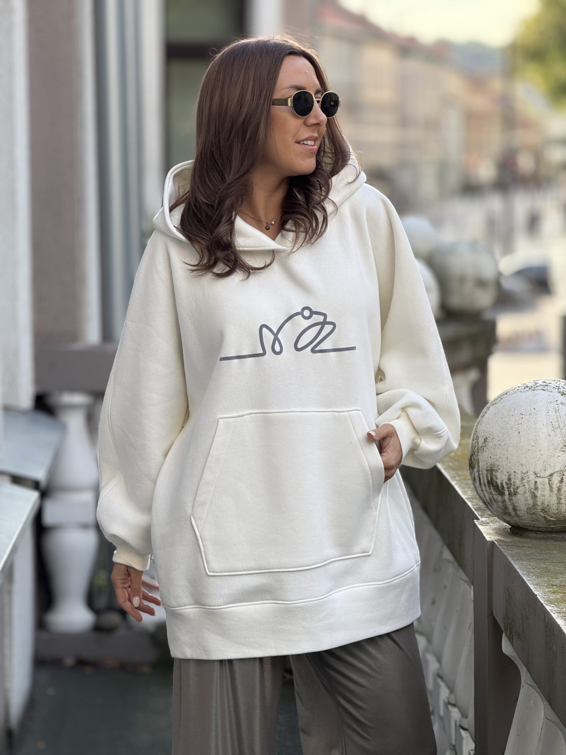 Pieno baltumo OVERSIZE didelis VARLIŲ bliuzonas su gobtuvu (su pūkeliu)
