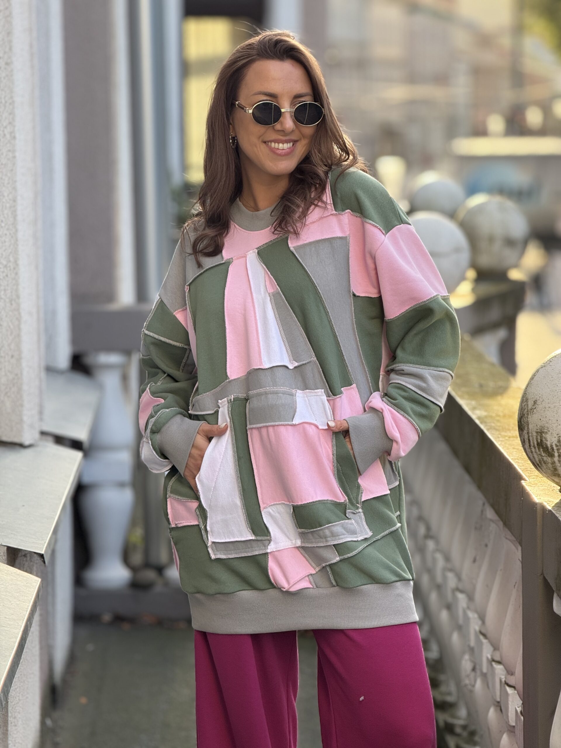 Rožinis/pilkas #zerowaste bliuzonas (M-L dydis)