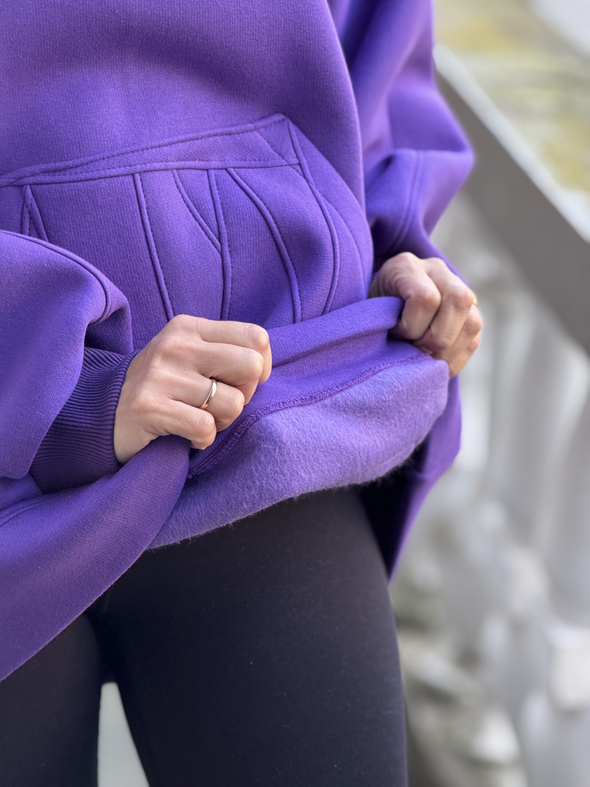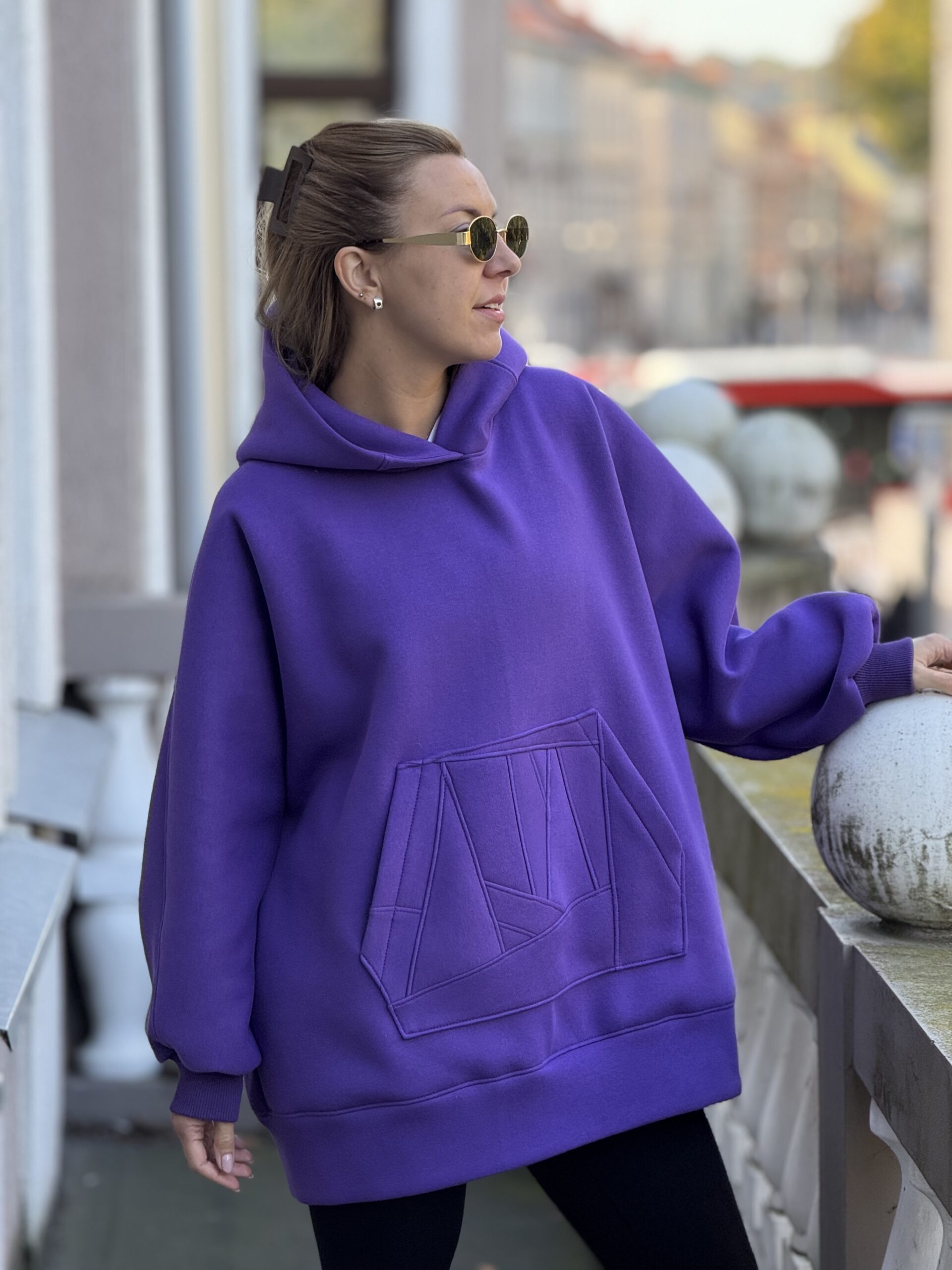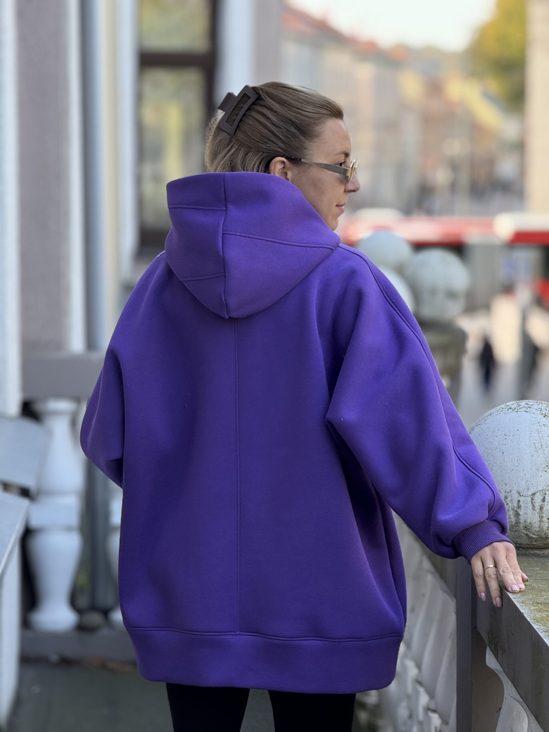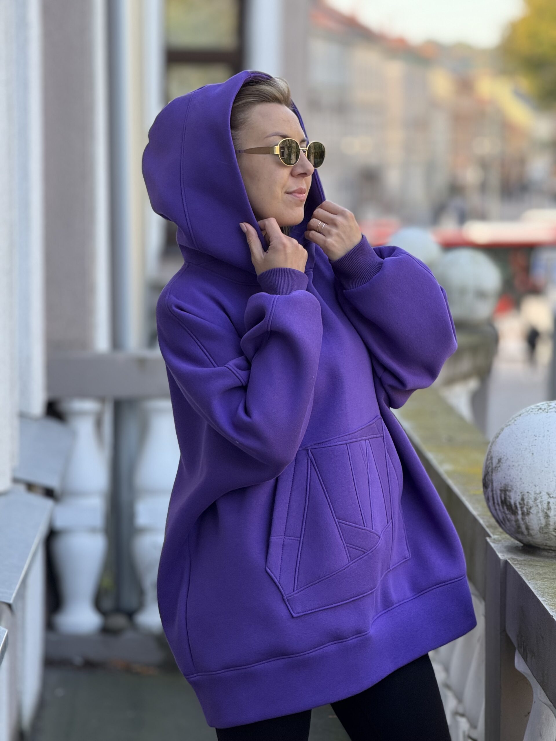 Violetinis OVERSIZE didelis bliuzonas su gobtuvu (su pūkeliu)