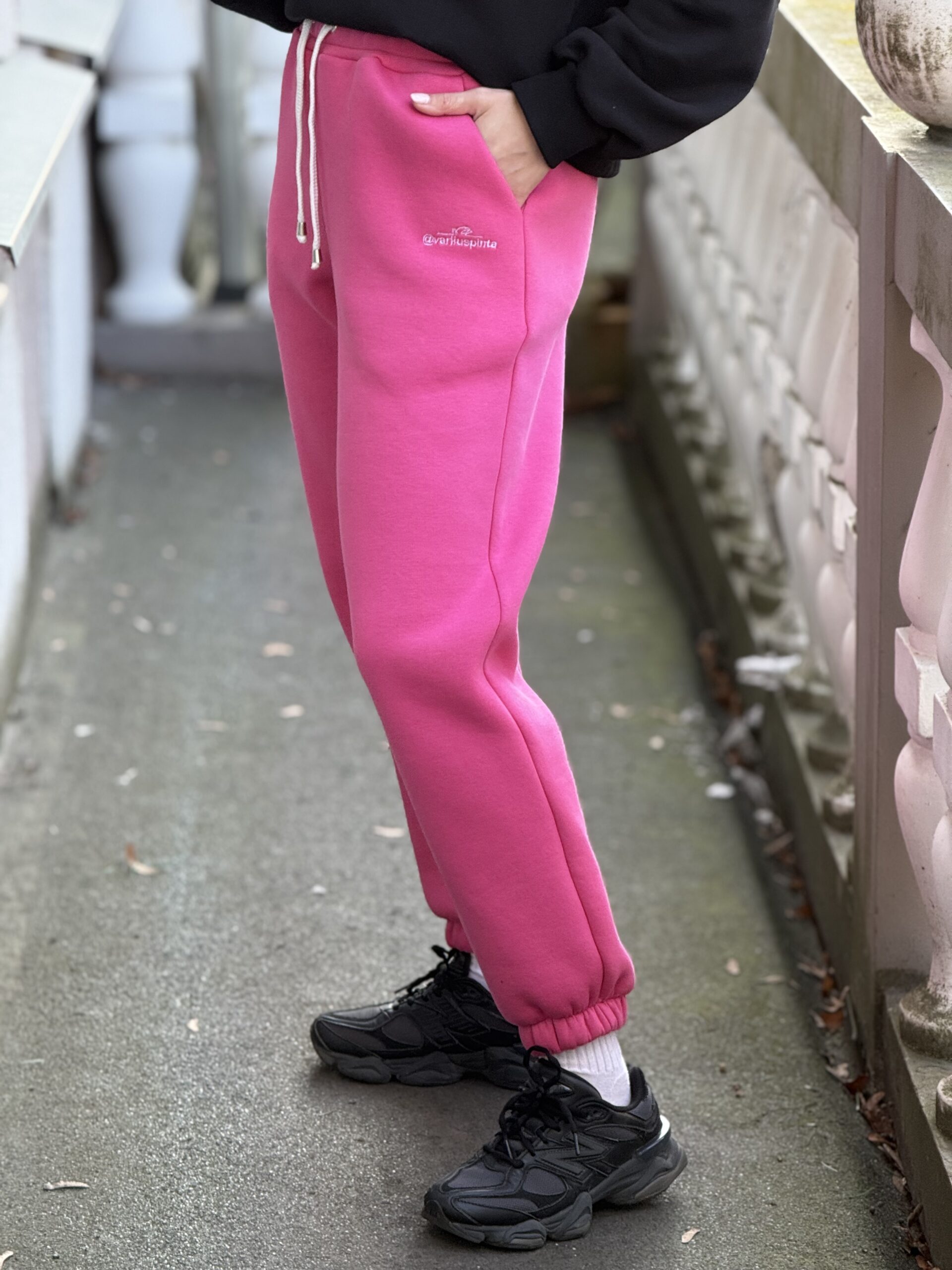 Rožinės pūkio kelnės S-M dydis