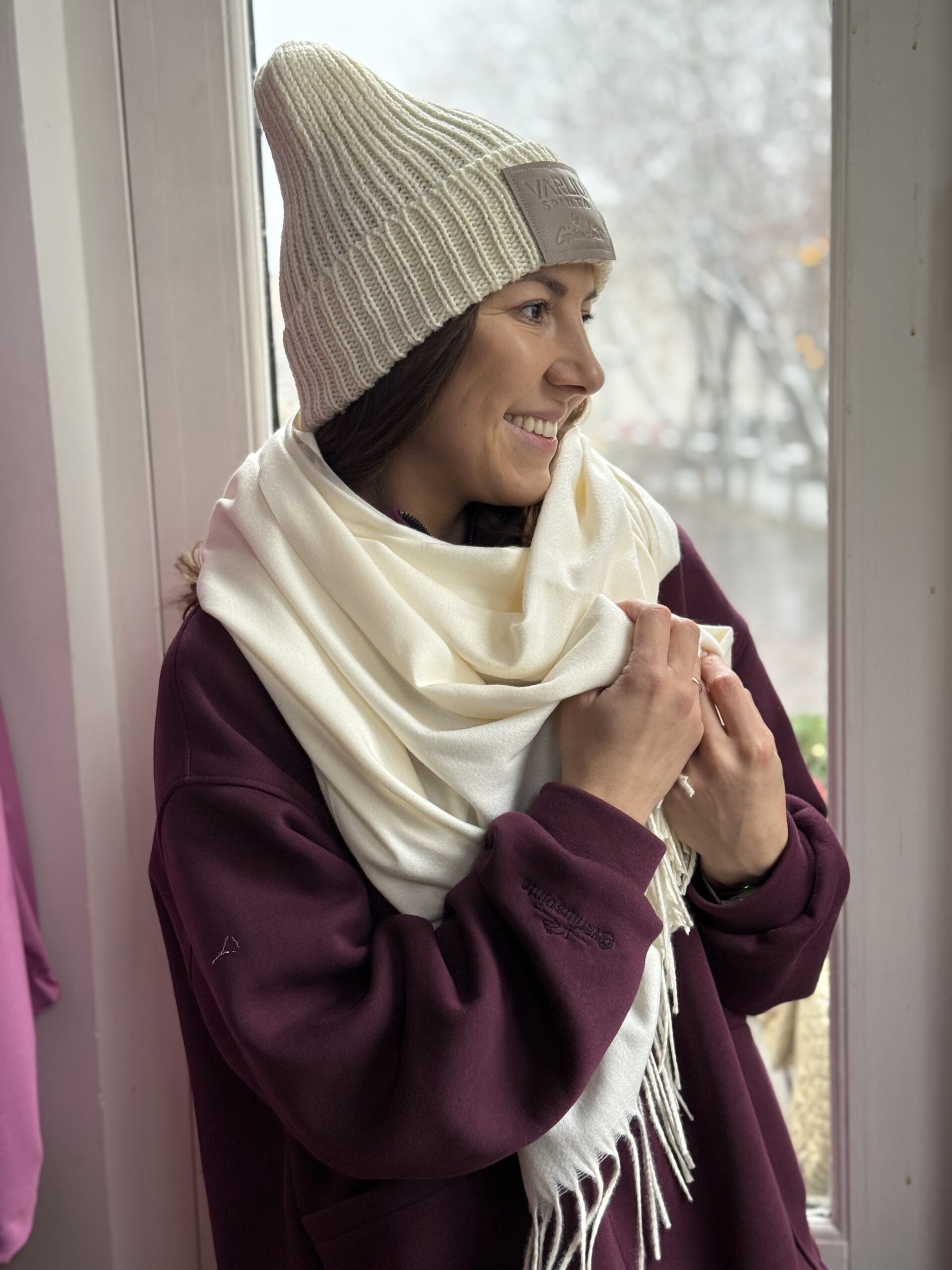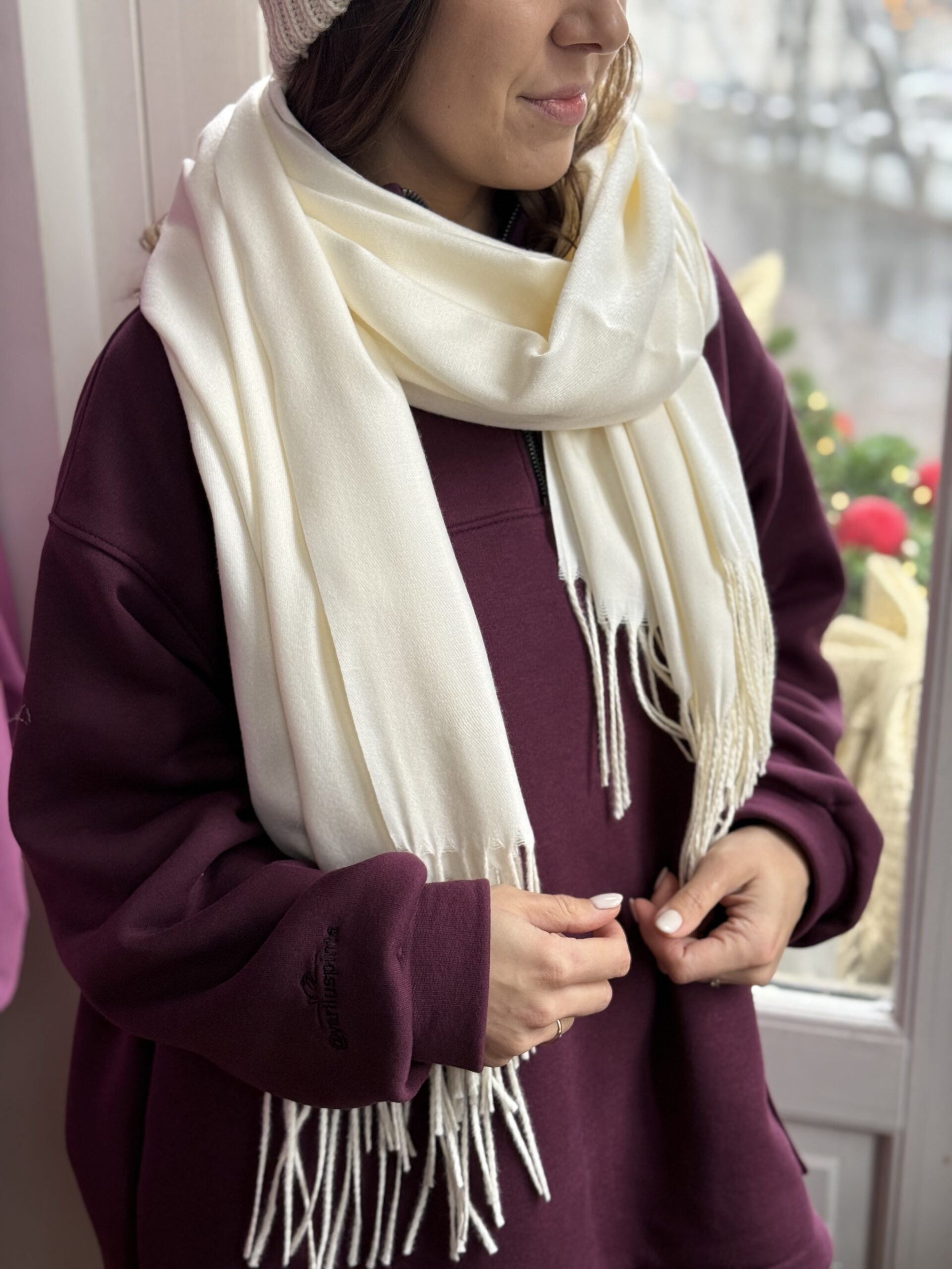 Pieno baltumo šalikas „kašmyro prisilietimas”