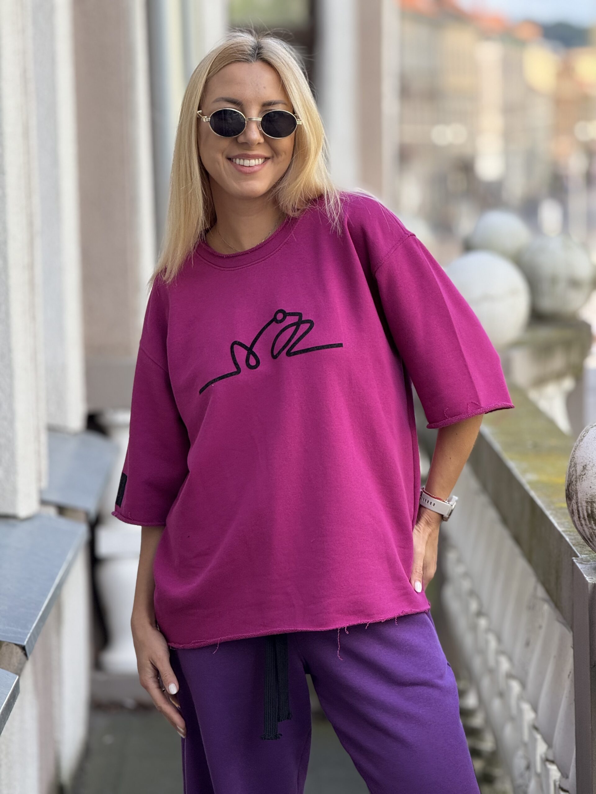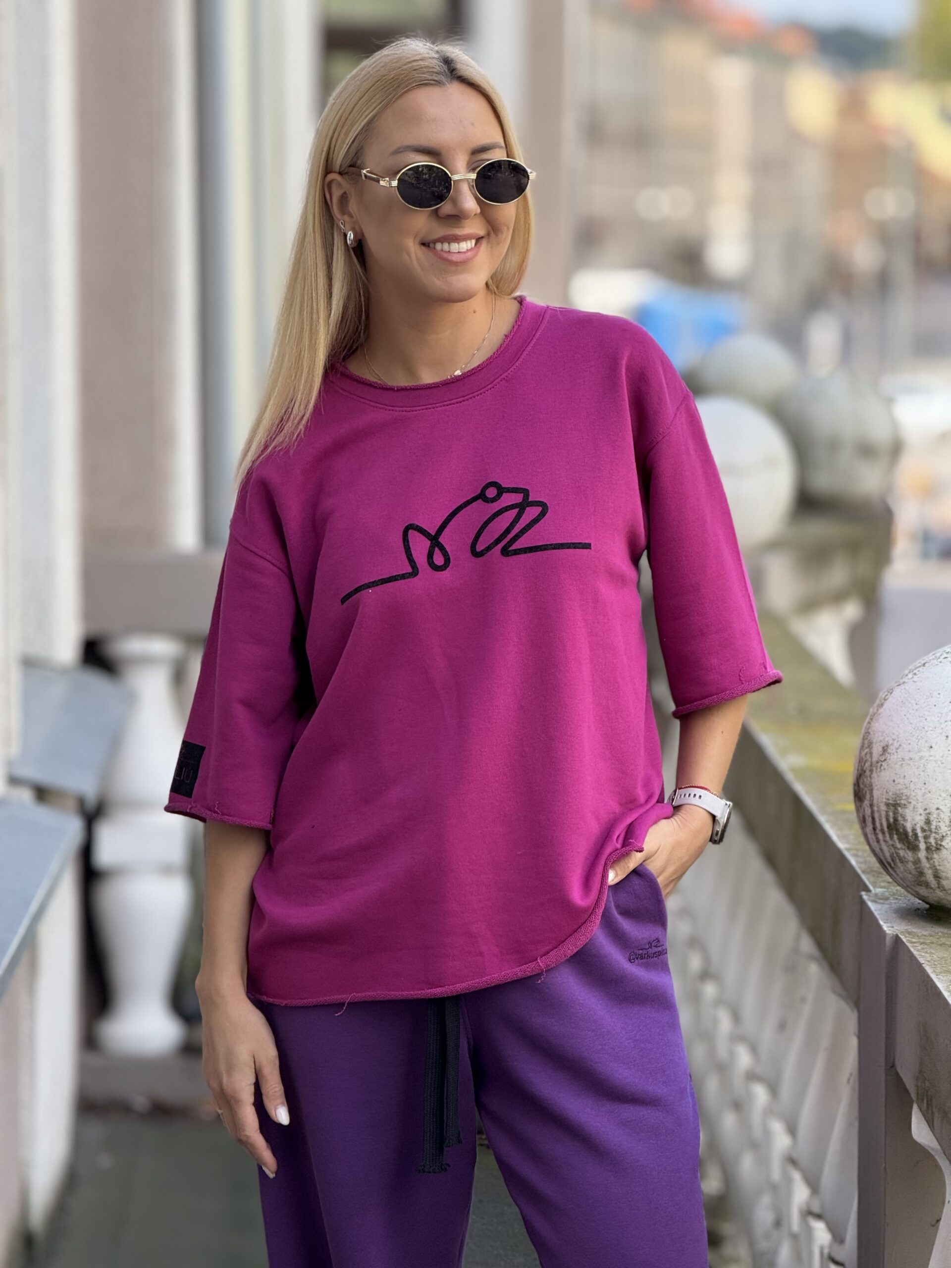 Burgundiško ciklameno VARLIŲ maikonas su JUODU LOGO