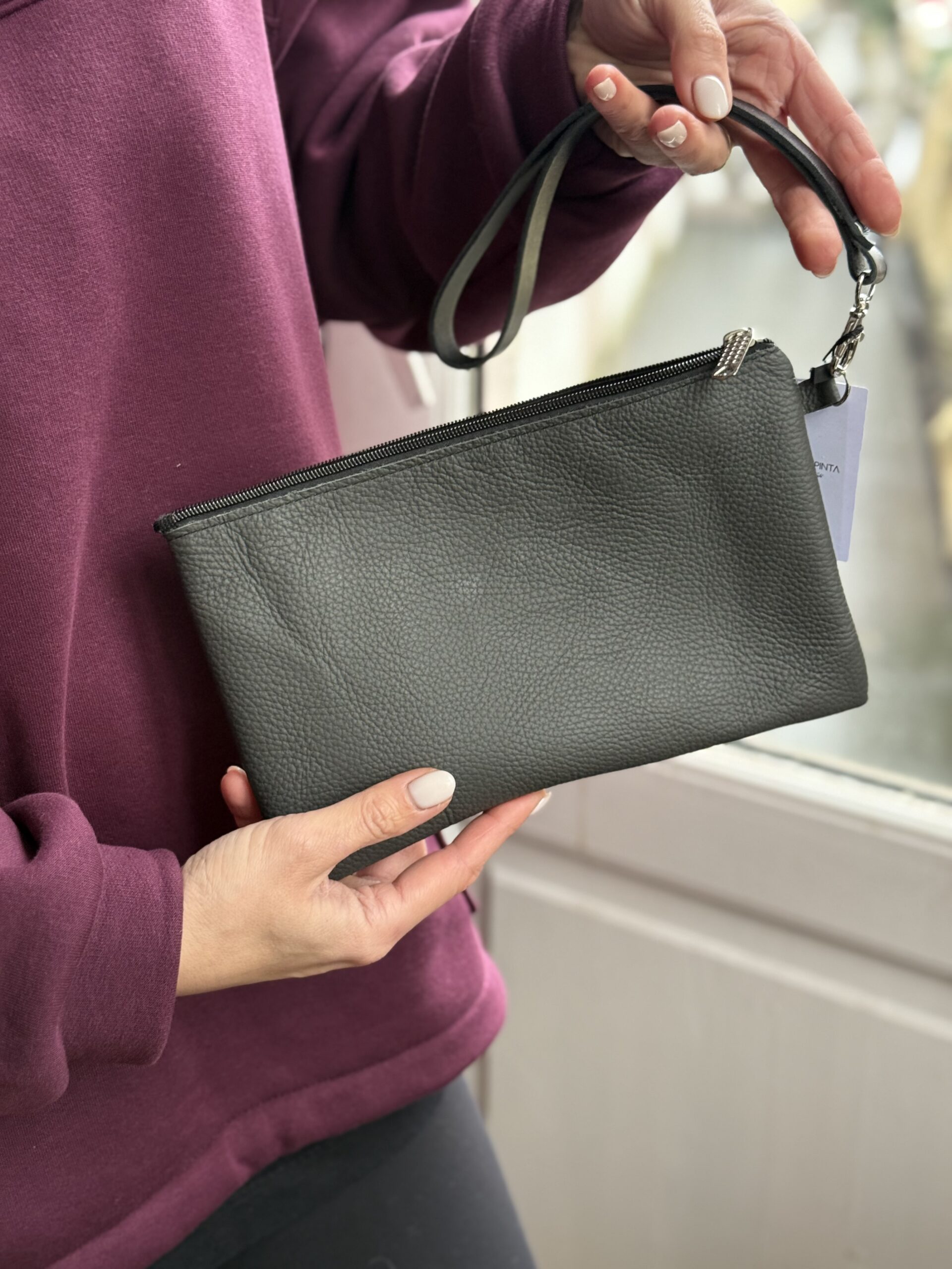 Pilka odinė delninė su logo Nr.1