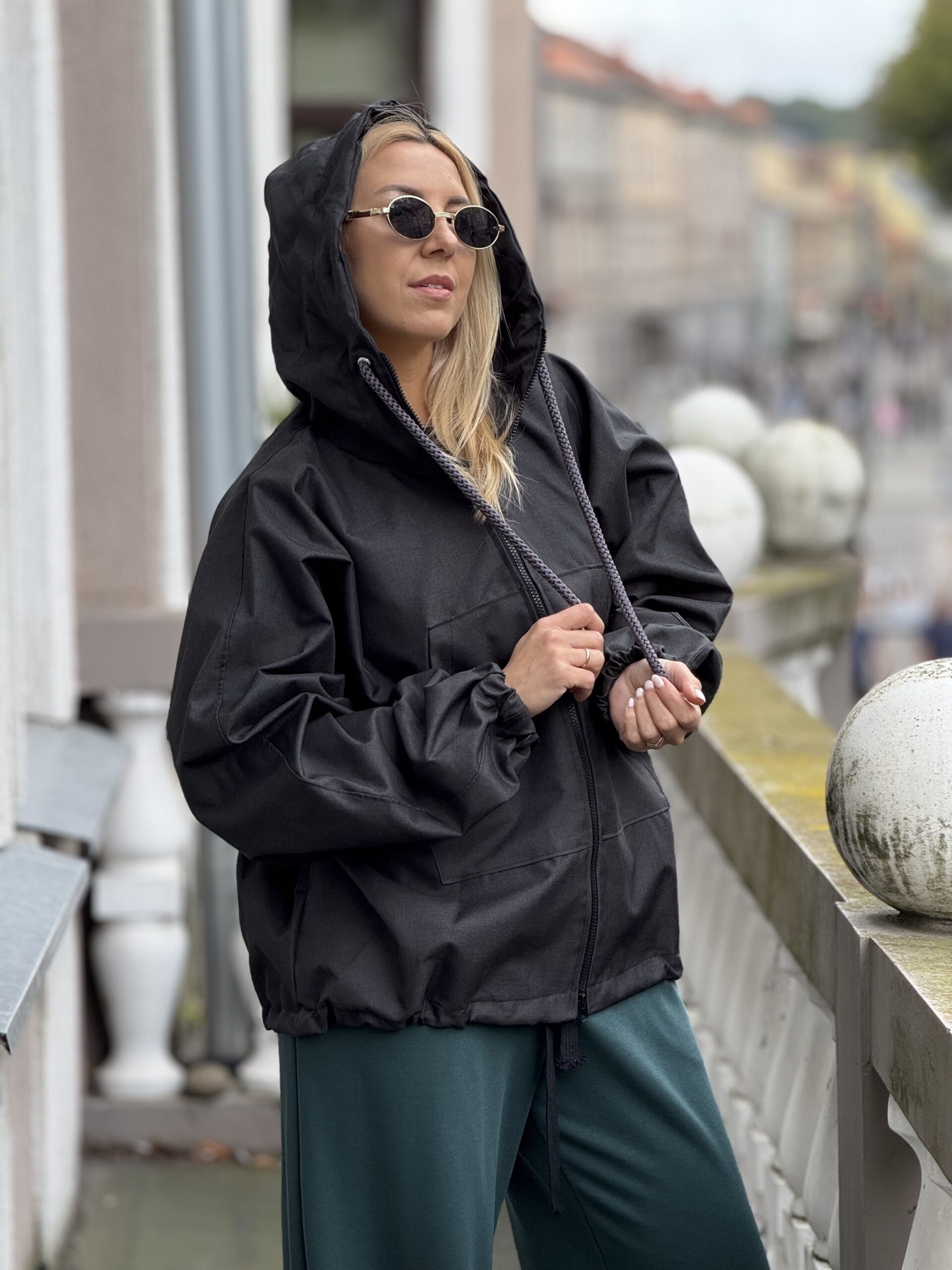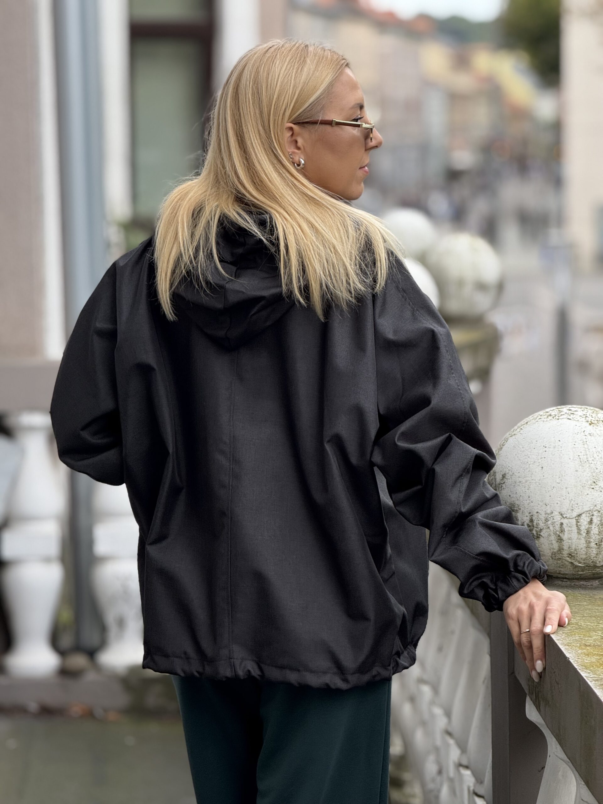 Juodas melanžinis trumpas lietpaltis