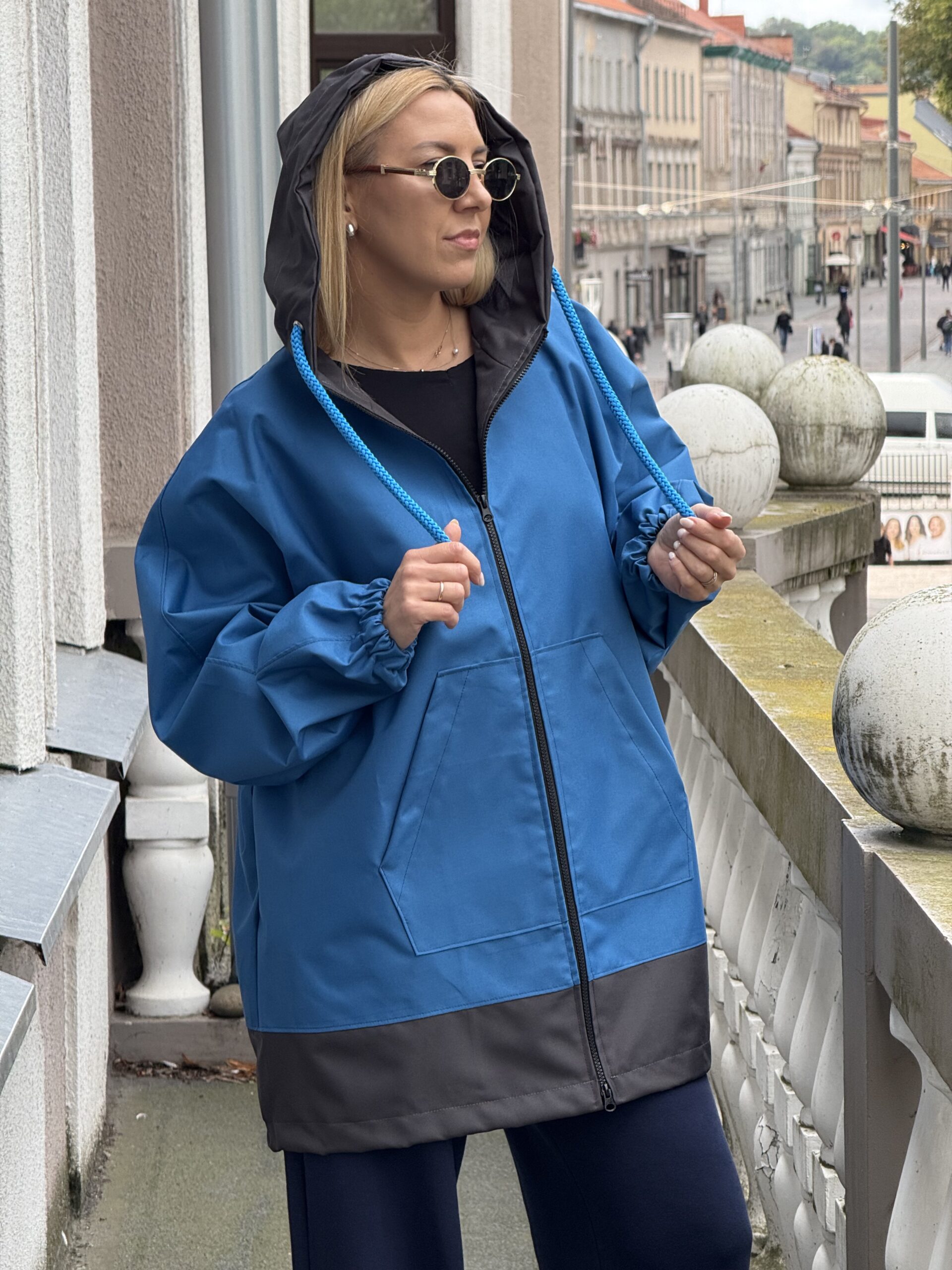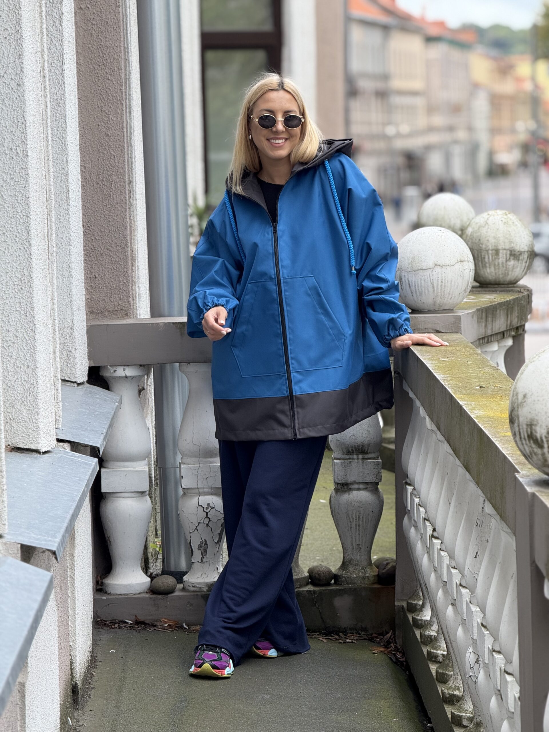 Mėlynas/pilkas #zerowaste ilgas lietpaltis