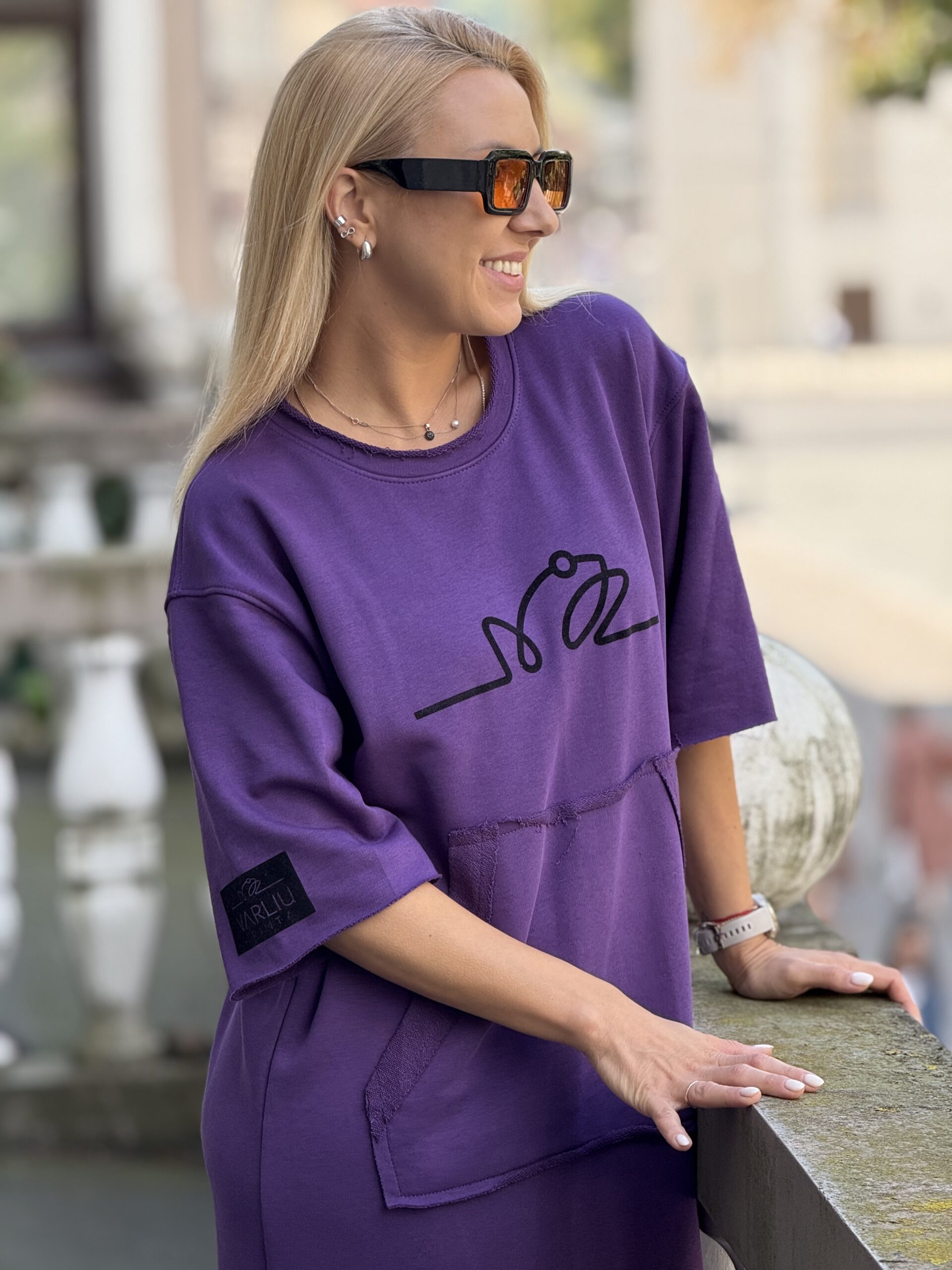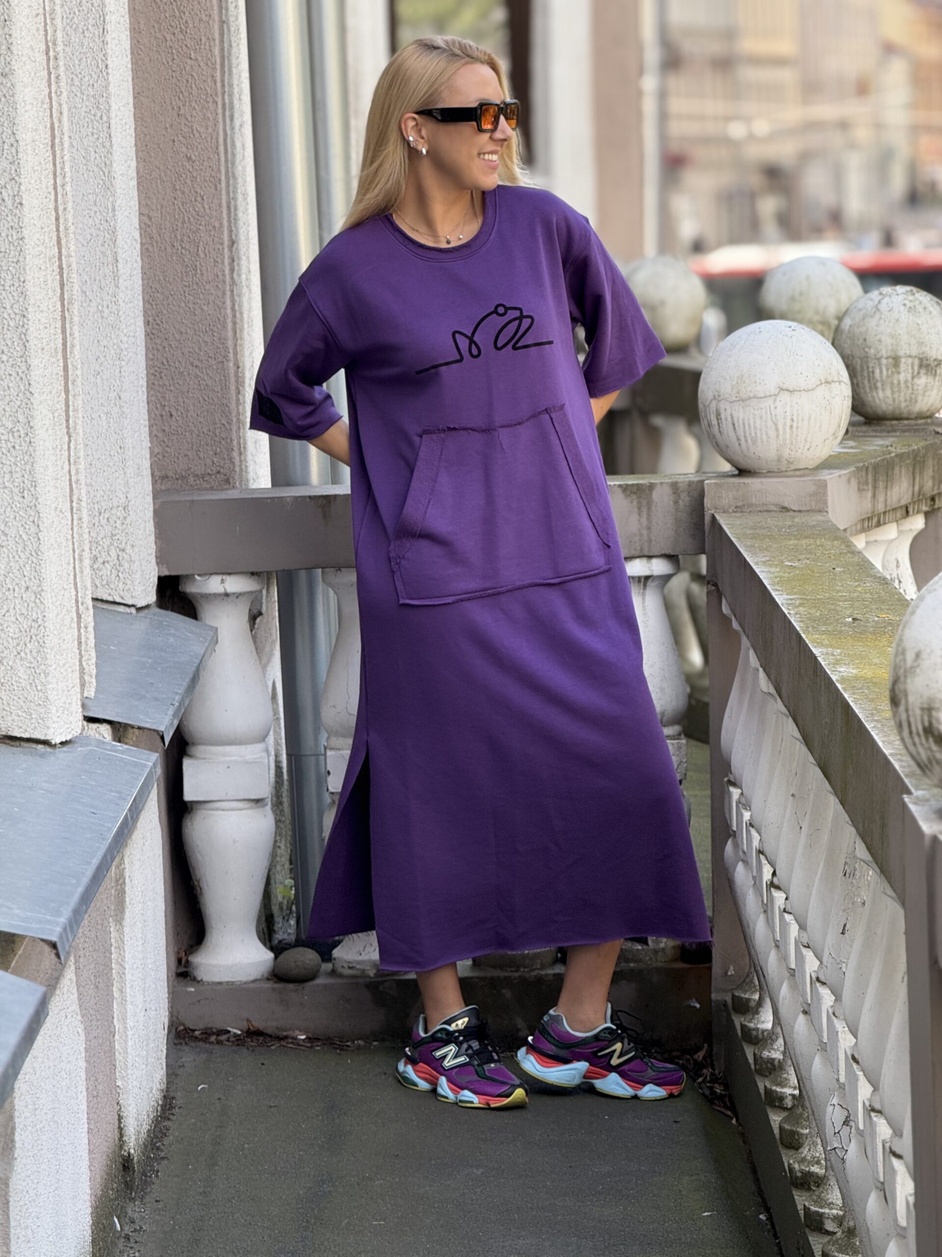 Kilpinio trikotažo VIOLETINĖ ilga VARLIŲ suknelė