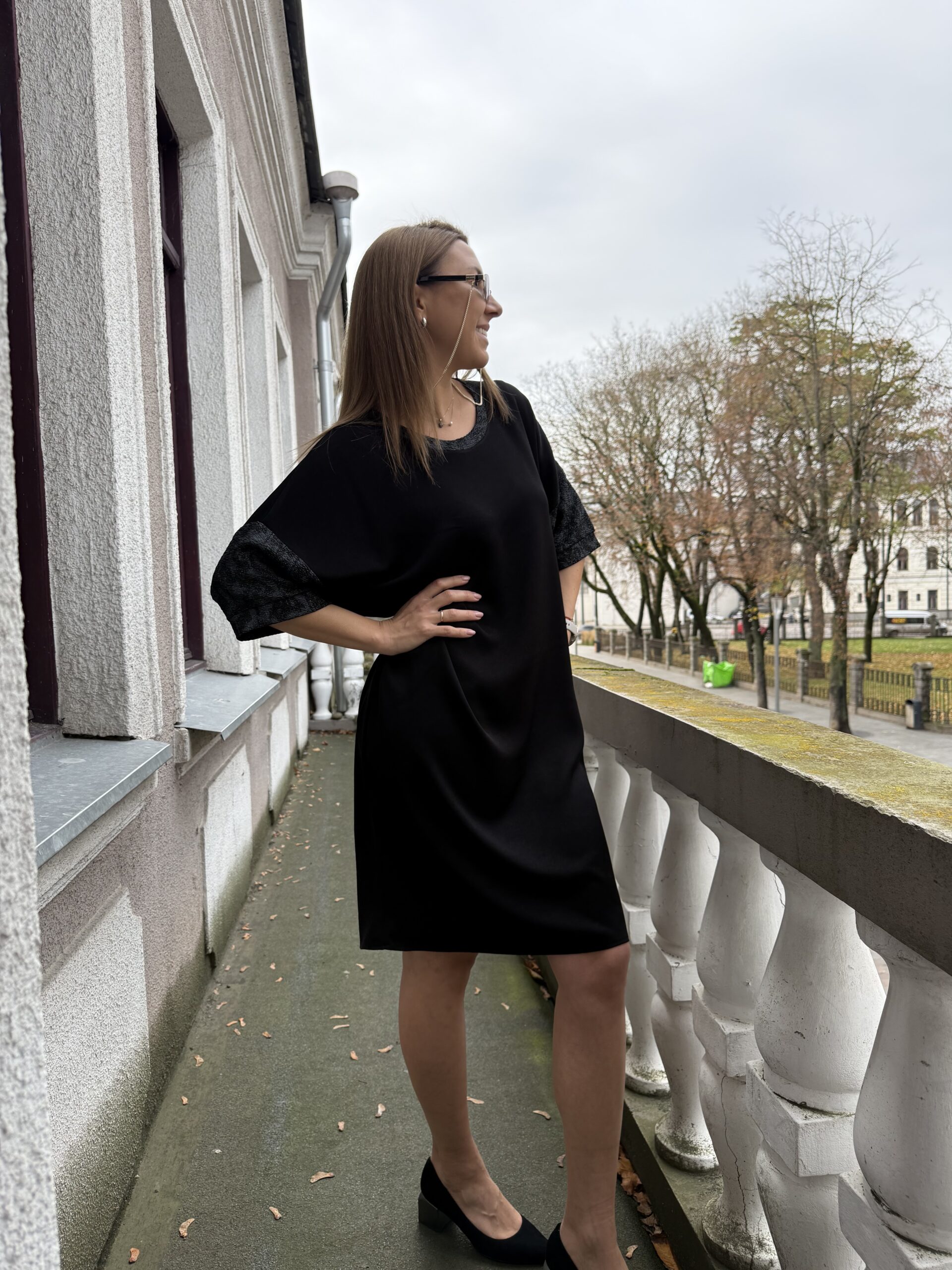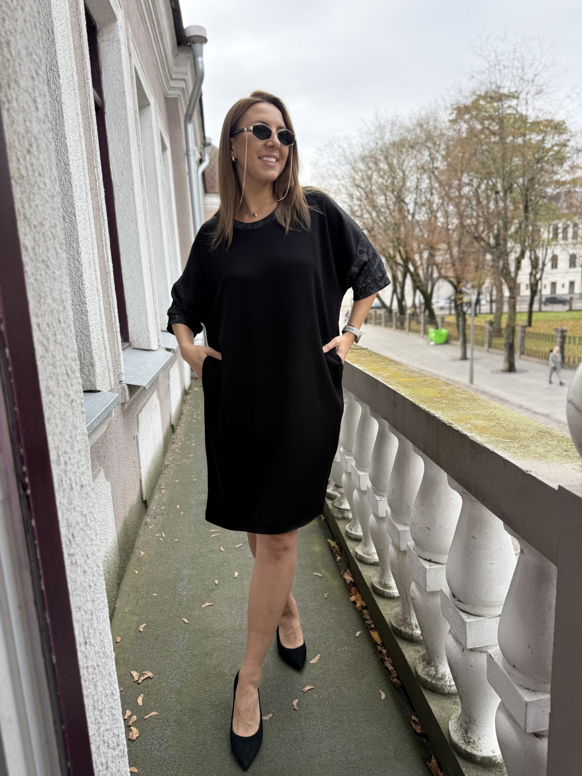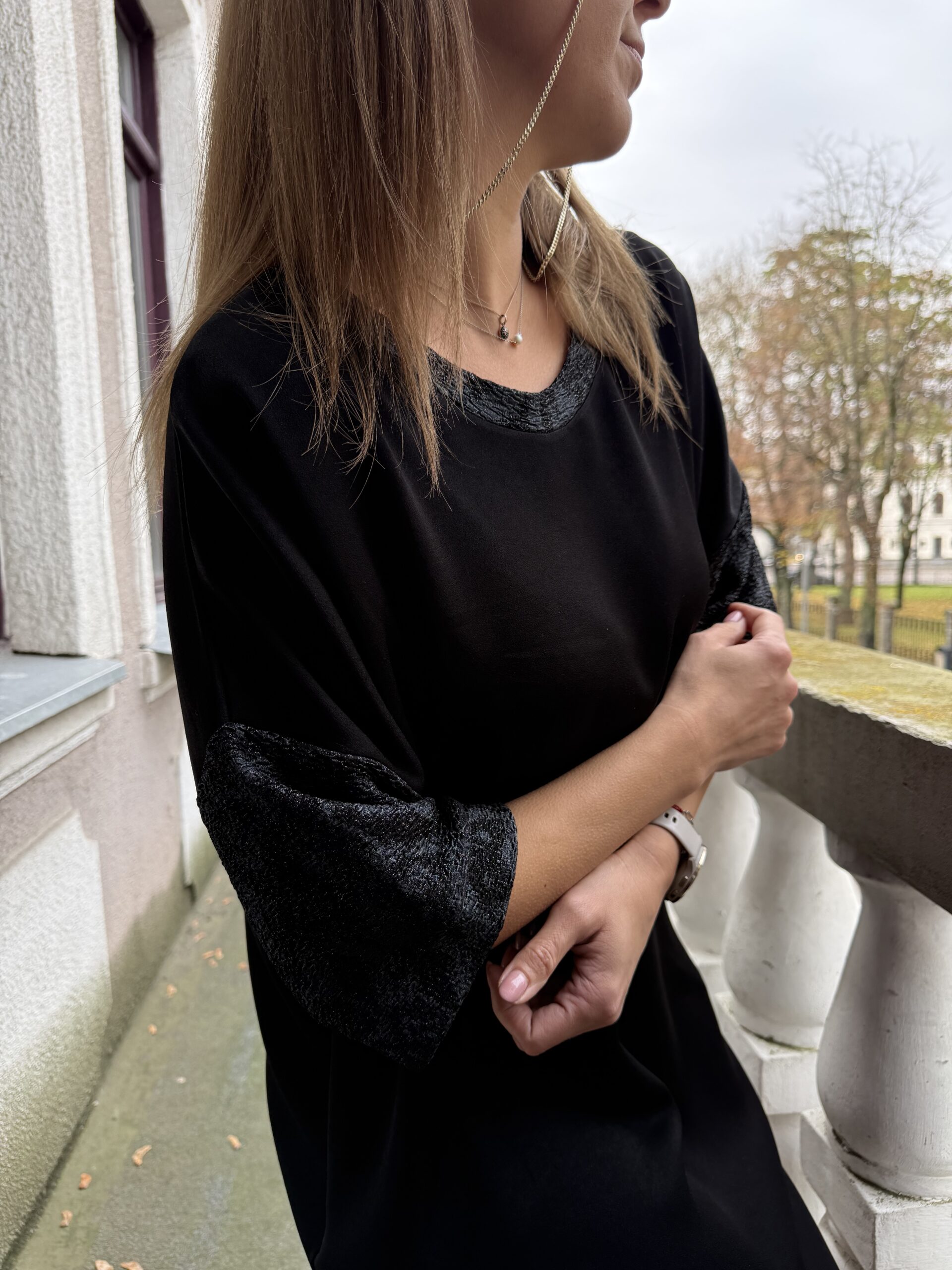 Siaurėjanti suknelė blizgiomis rankovėmis M/L dydis