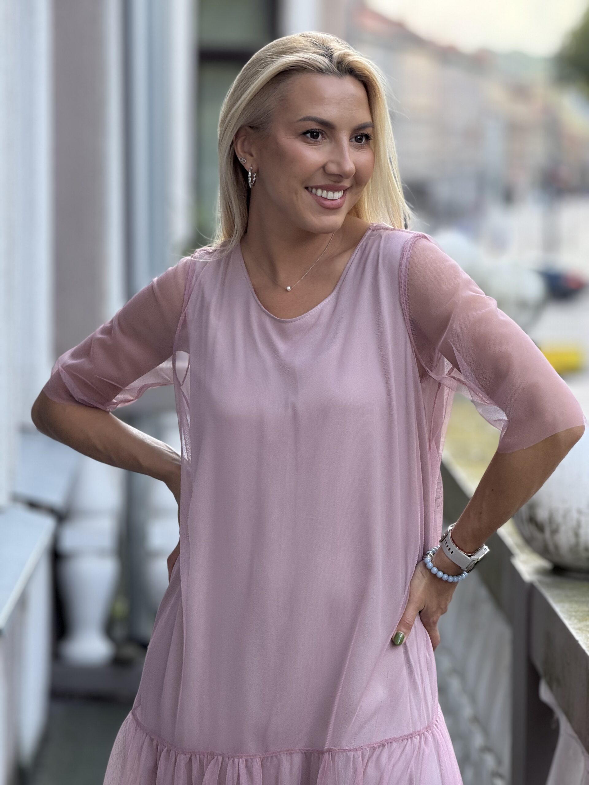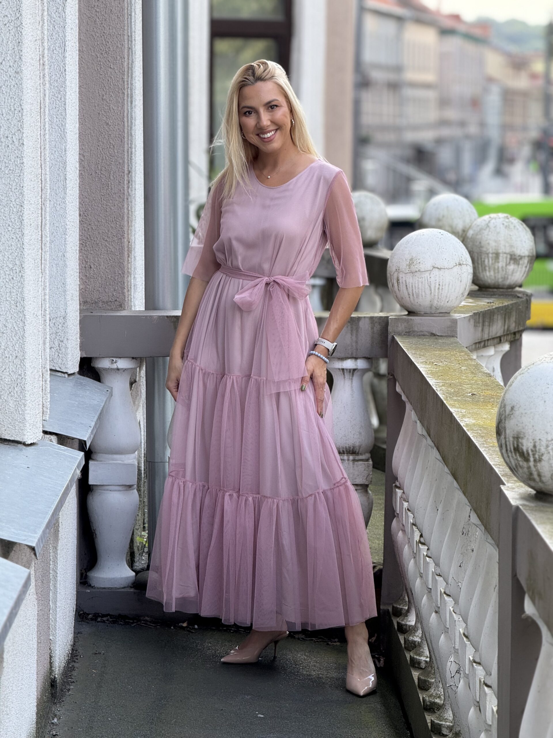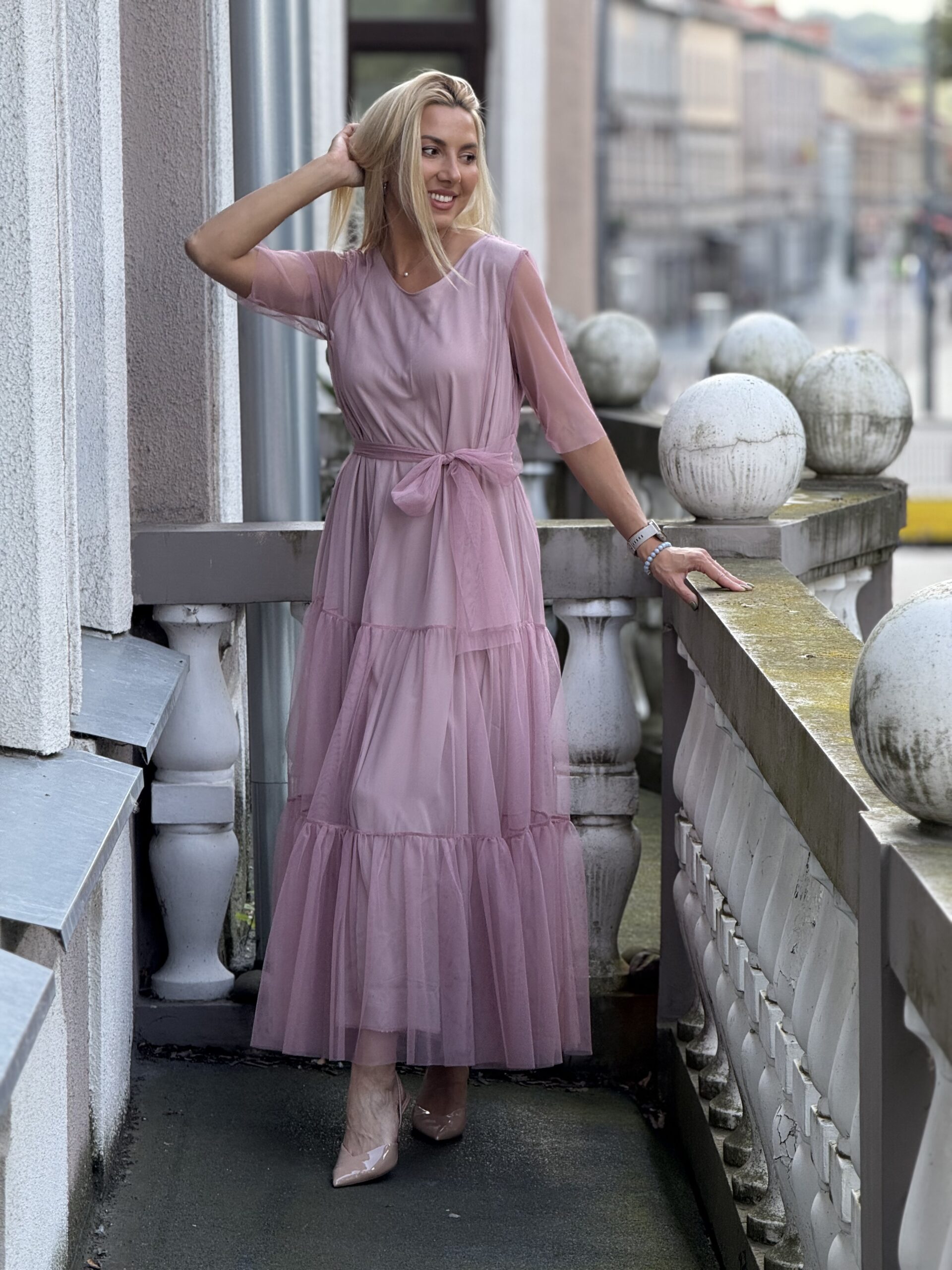 Tiulinė pelenų rožinės spalvos suknelė Dydis maždaug M, tinka ir S