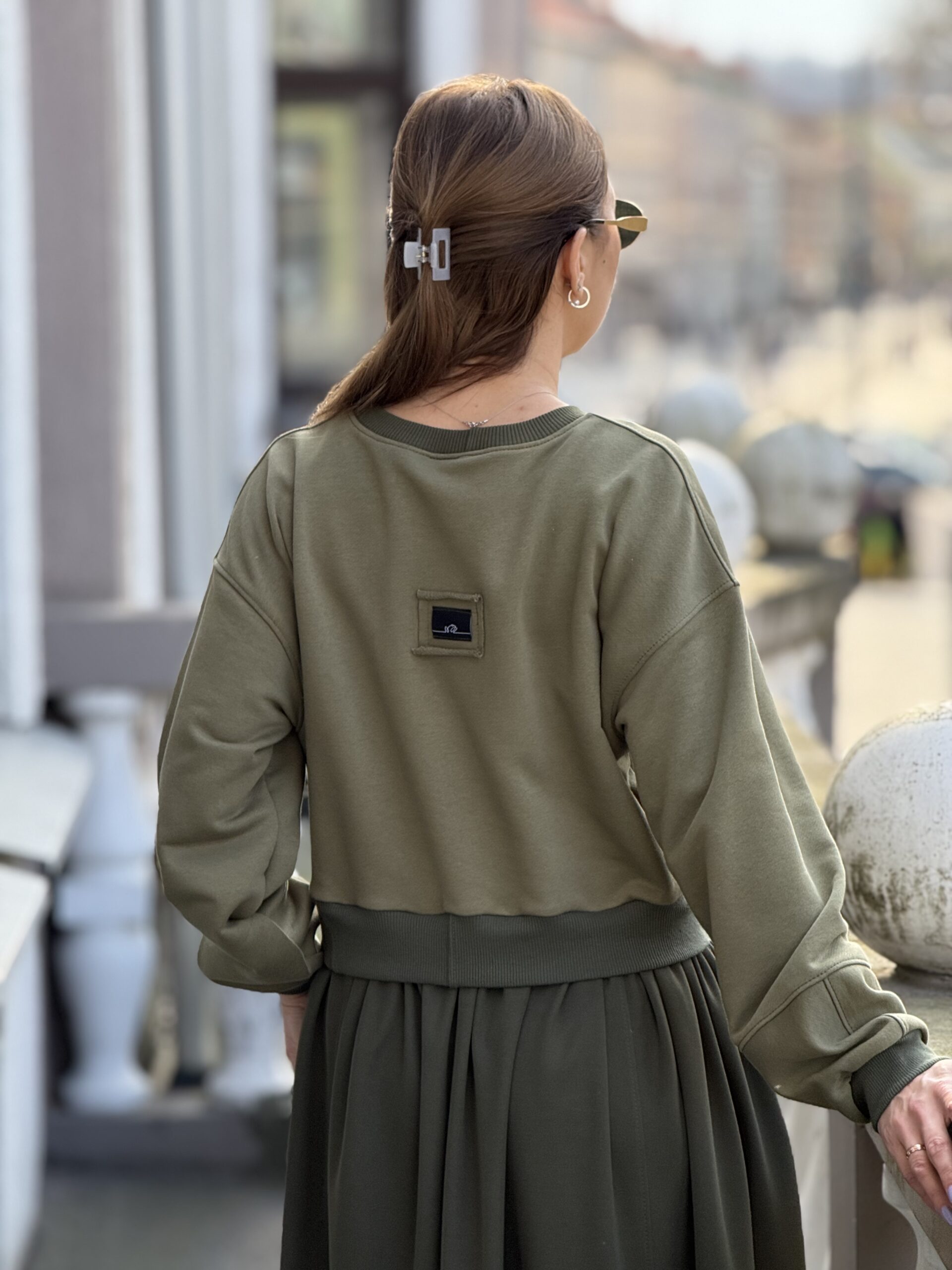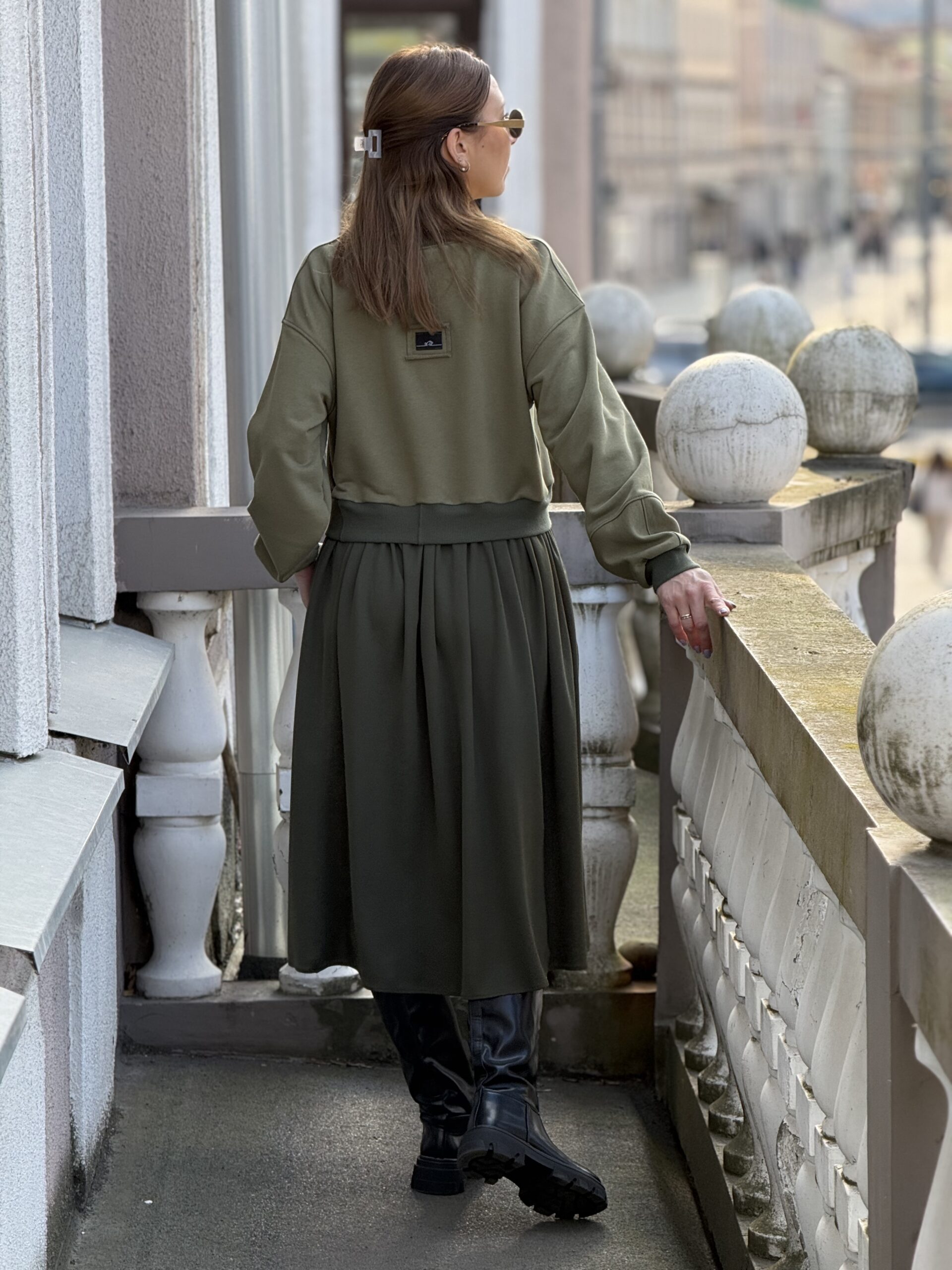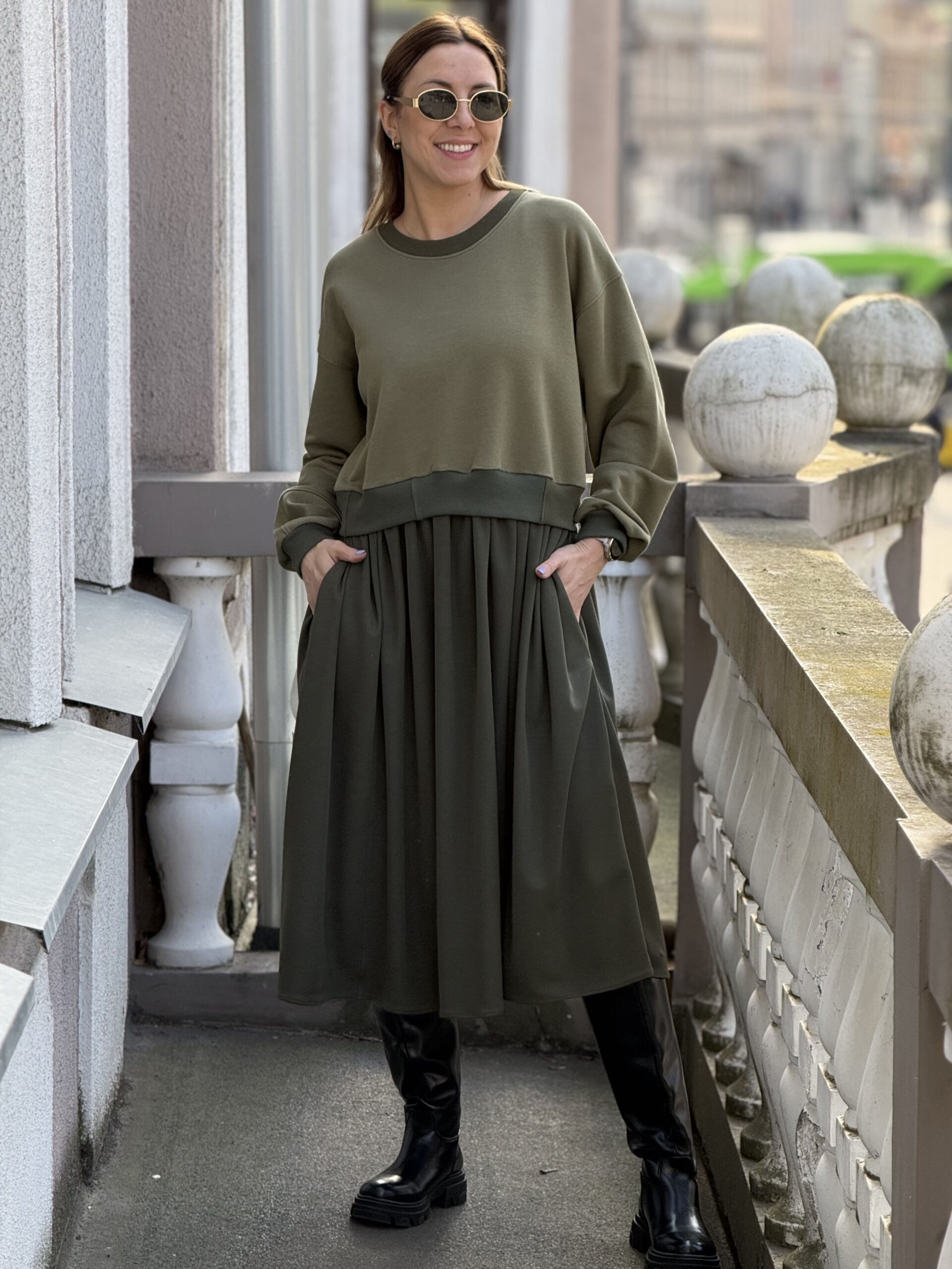 Vienetinė chaki suknelė #zerowaste (atrodo kaip džempas ir sijonas)